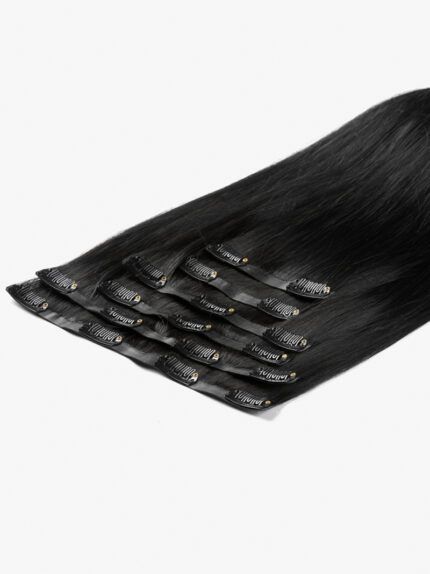 PREMIUM – CLIP IN BEZŠVOVÉ ĽUDSKÉ VLASY – 30 CM, 120g #1 ČIERNA