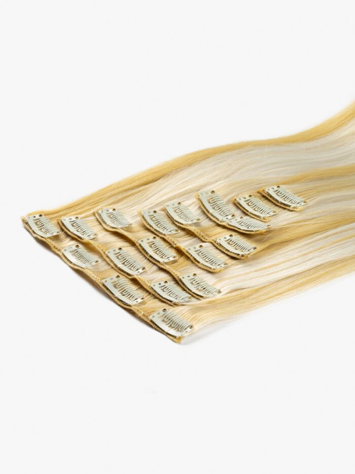 Ako pripnúť vlasy? Nepotrebujete k tomu nikoho pomoc a nasadenie celej sady Vám zaberie iba pár minút. Na každý prameň vlasov sú našité sponky Clip In. . Každá vlásenka má silikónový remienok, ktorý dostatočne chráni vlasy pred zosunutím. Spony sú malé a nie obťažujúce, takže po chvíli zabudnete, že ich máte vo vlasoch.