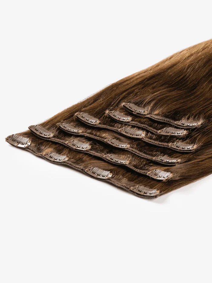 CLIP IN -43 CM, 120G ĽUDSKÉ VLASY #Ombre – T4/8 Hnedé s tmavým blond