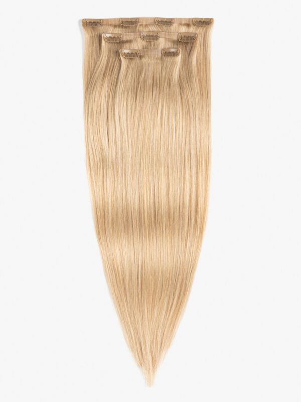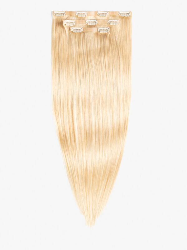 CLIP IN BEZŠVOVÉ – 50 CM, 60G ĽUDSKÉ VLASY #18/22 Šampanská blond s jasným blond