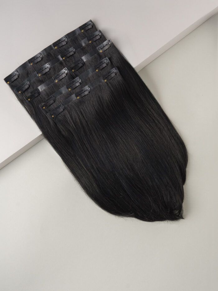 PREMIUM – CLIP IN BEZŠVOVÉ ĽUDSKÉ VLASY – 30 CM, 120g #1 ČIERNA