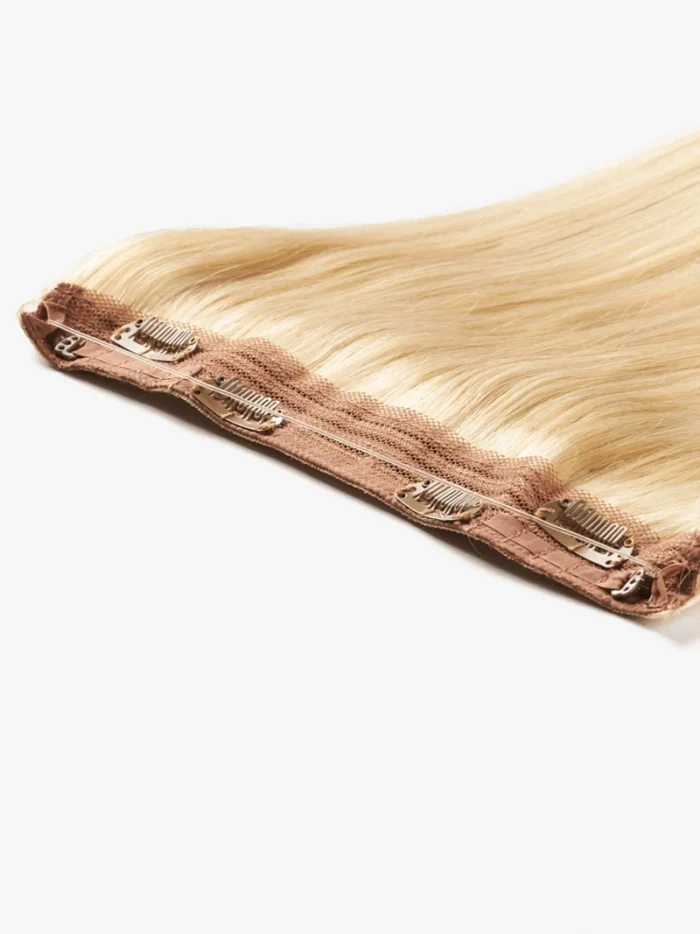 53 cm prírodných ľudských vlasov na jednej páske Flip-In. Páska obsahuje aj štyri sponky, ktoré si môžete pripevniť na vlasy, aby vám neskĺzli z hlavy. Páska je široká 25 cm. Jedinečnou výhodou tejto príčesky je jej rýchla aplikácia. Vďaka neviditeľnej páske Flip-In vaše prirodzené vlasy nie sú zaťažené. Dosiahnete efekt dlhších a hustejších vlasov bez obáv o stav vašich prirodzených prameňov.