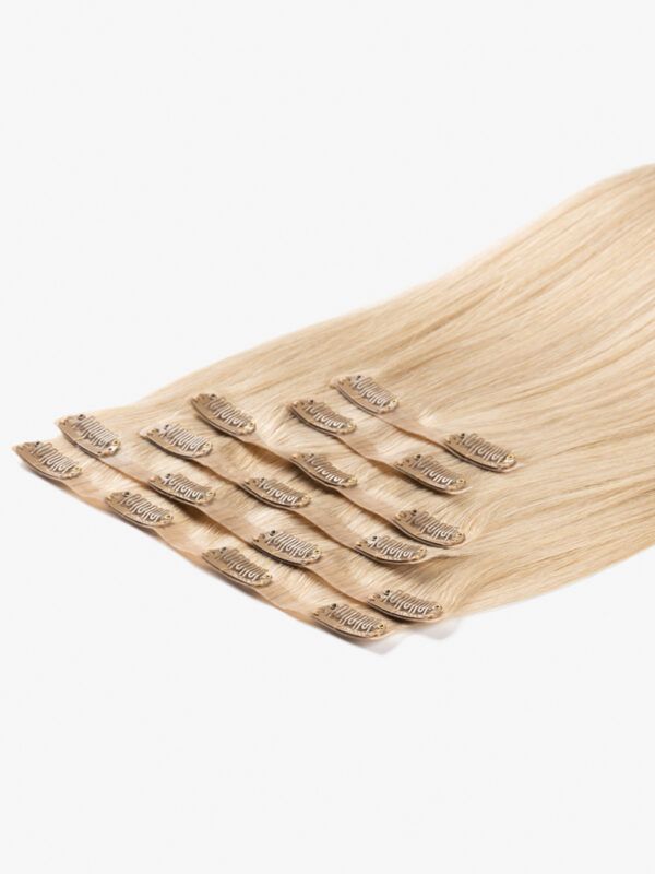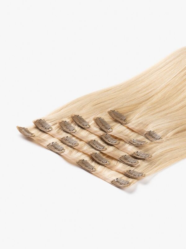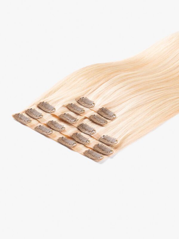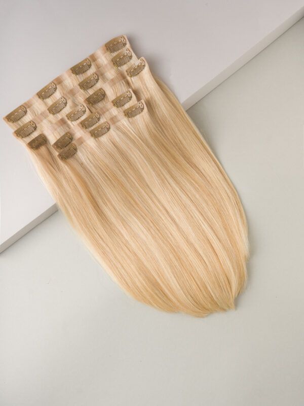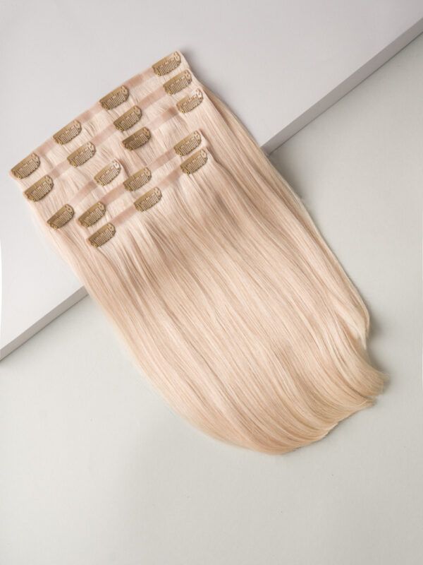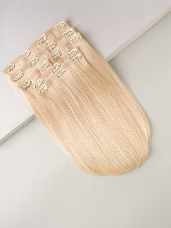 Ak vás už nebavia rozstrapkané končeky, hrubé pásky, tento produkt je pre vás ideálny: husté od korienkov po končeky, tenké bezšvové pásky, husté vlasy.  Vyrobené zo 100 % vysoko kvalitných, prírodných vlasov. Jedna prémiová sada CLIP-IN poskytuje veľkolepejší efekt ako dve štandardné sady. Táto sada je vhodná aj pre veľmi jemné príčesky.