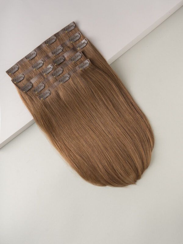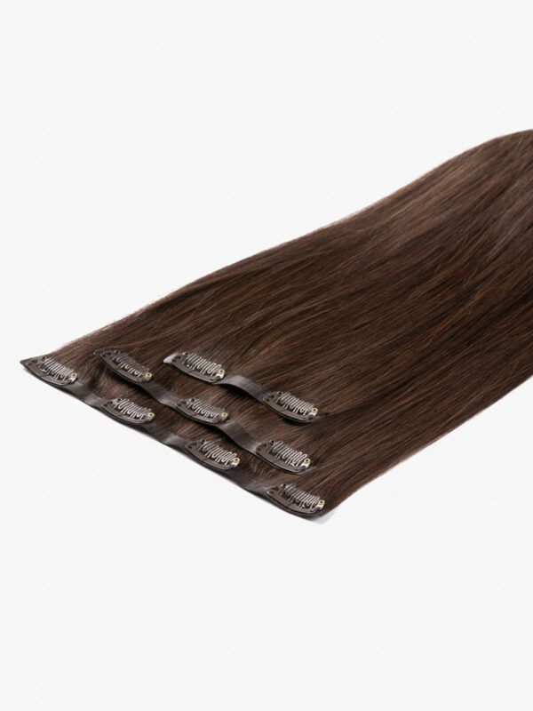 PREMIUM – CLIP IN BEZŠVOVÉ ĽUDSKÉ VLASY – 30 CM, 120g #3 HNEDÁ